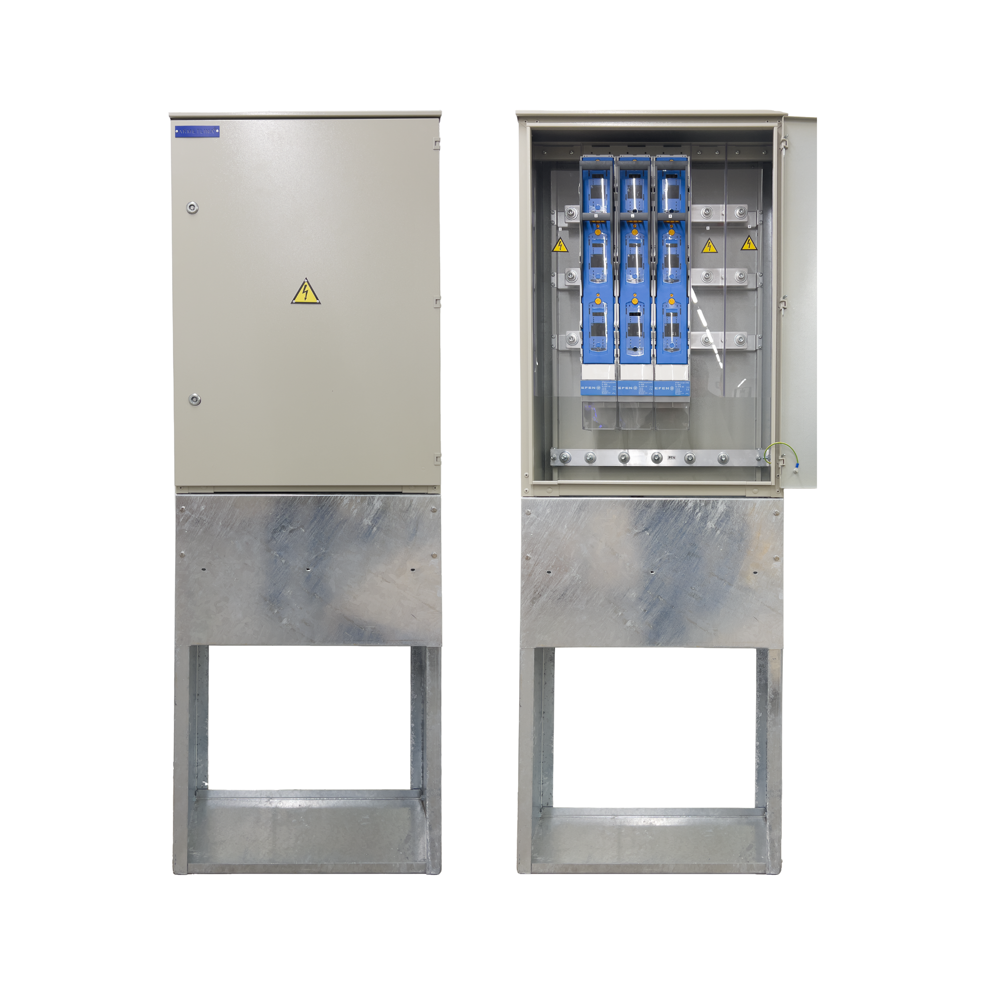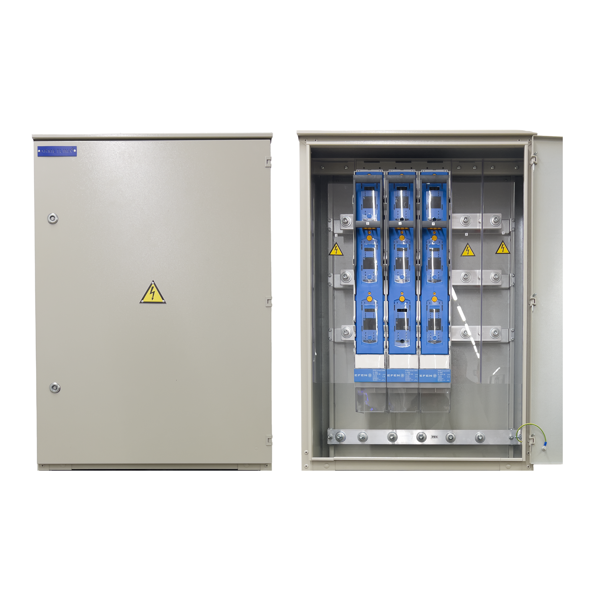0,4kV kabelių spinta skirta prijungti šešis kabelius (≤ 240 mm²) prie šynų ir/ar komutacinių aparatų NH2/NH3 (400A/630A).