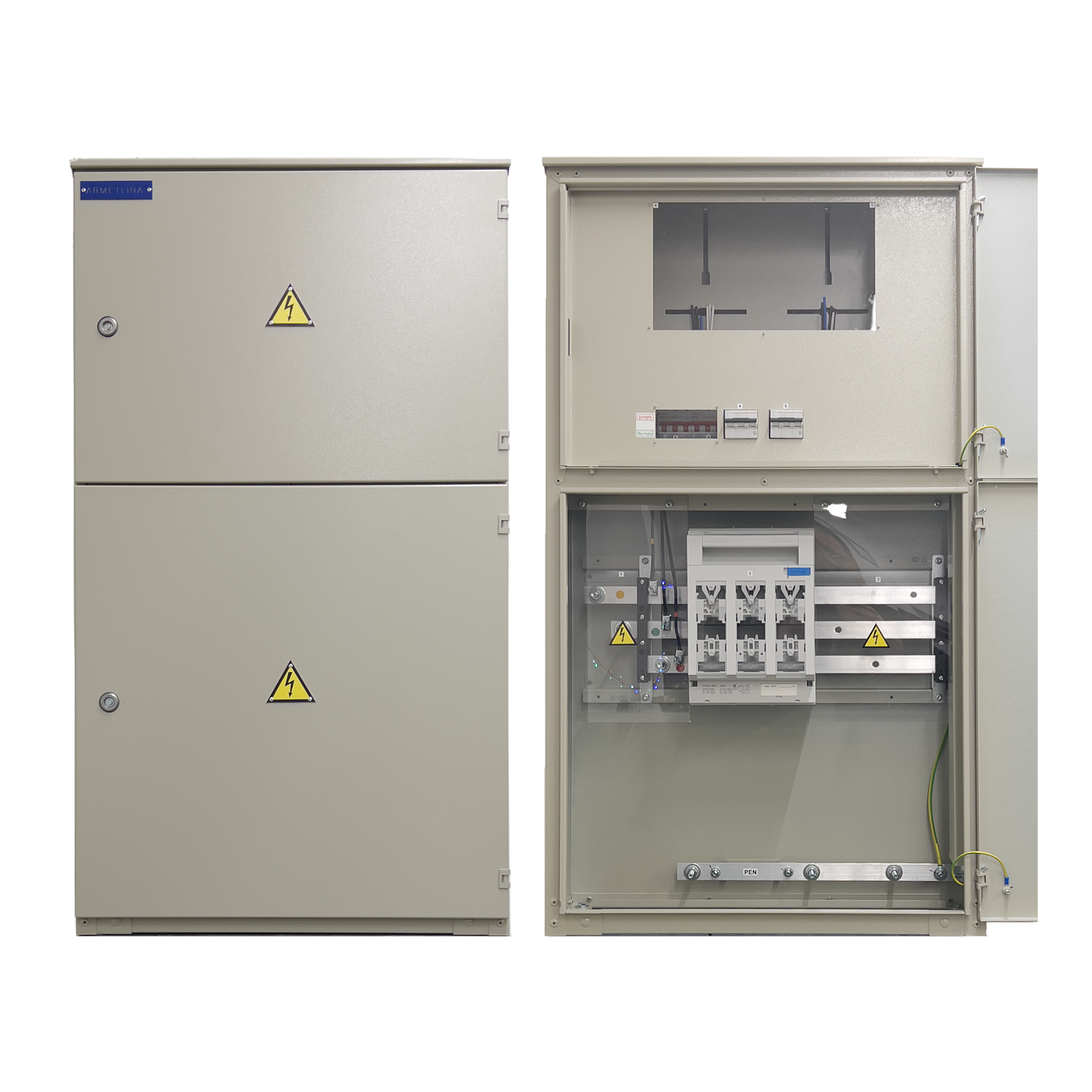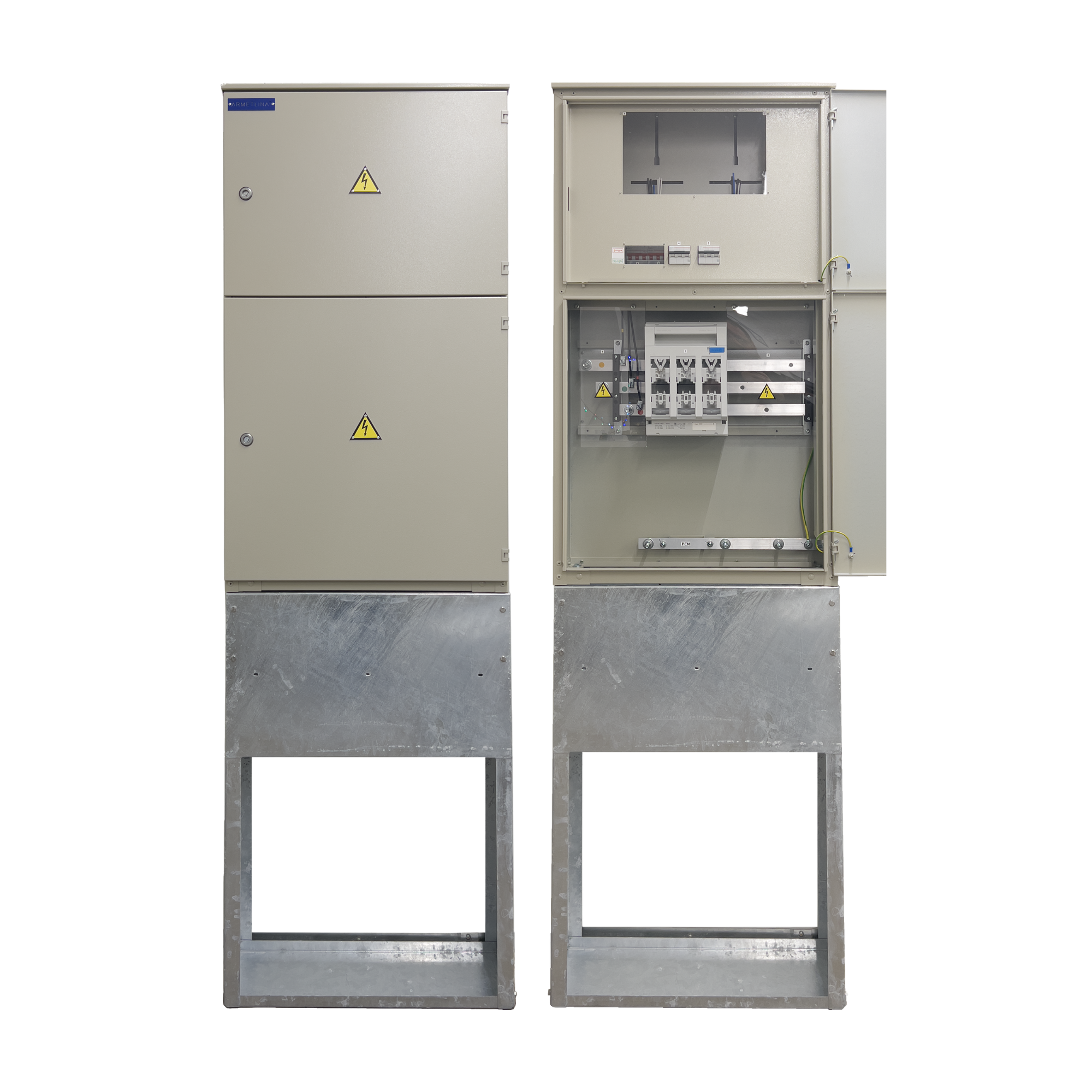 Dviejų apskaitų tranzitinė elektros kabelių spinta skirta prijungti tris kabelius (≤ 240 mm²) prie šynų ir/ar komutacinių aparatų NH2 (400A).